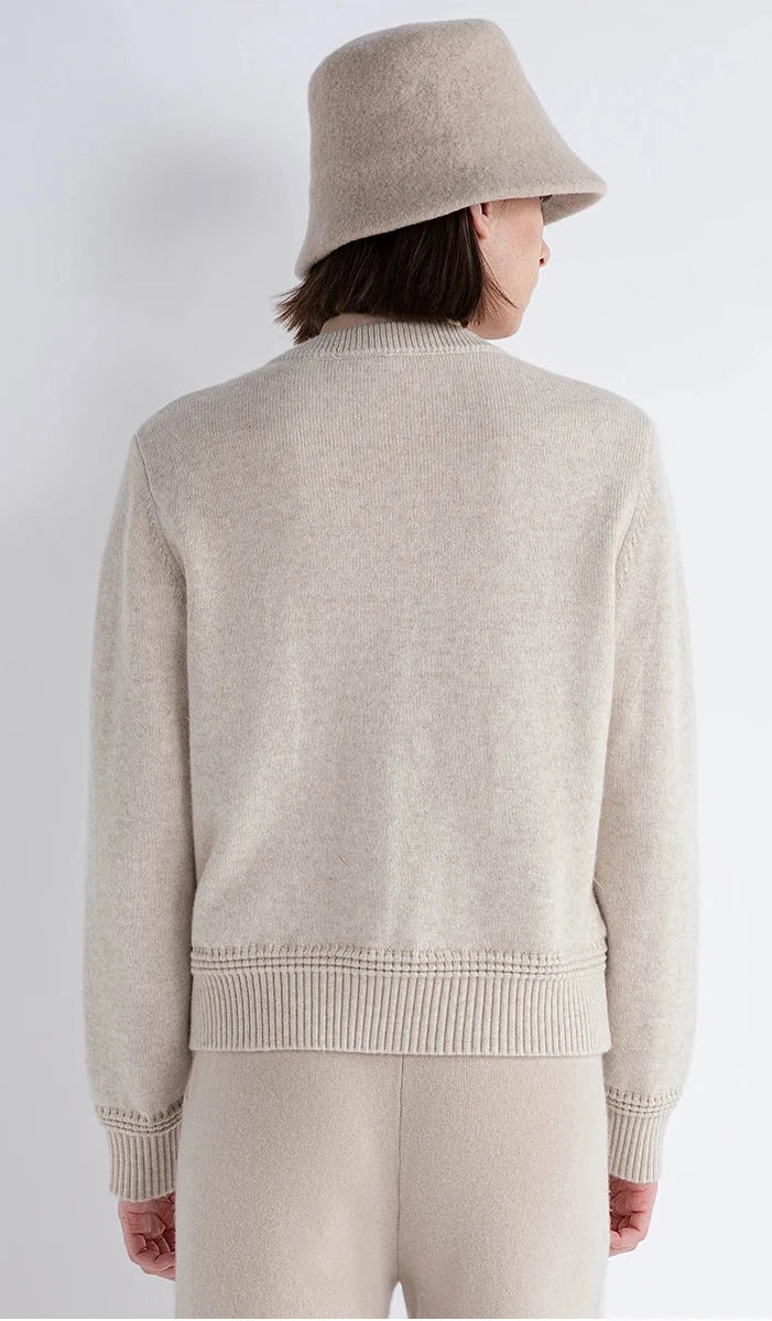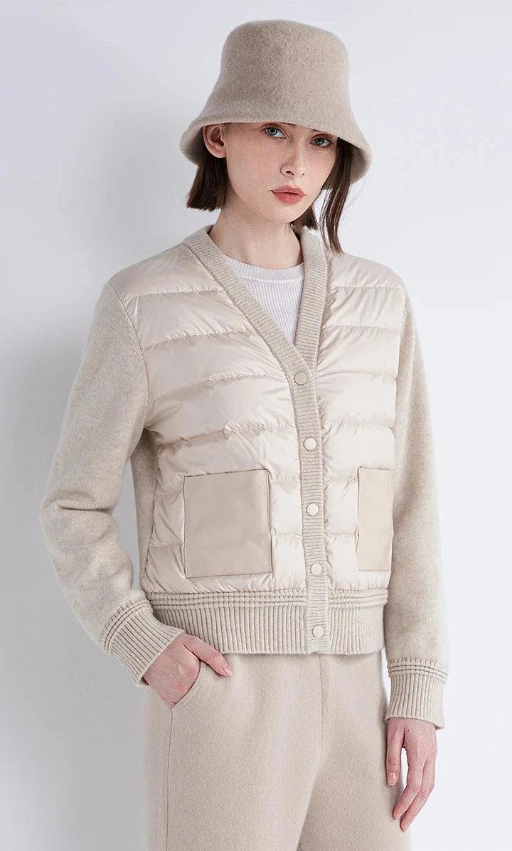 A cashmere coat washed in Sahara light, softened by the breath of white goose down. Front pockets fall like gentle pauses, balancing form with quiet intention. A piece where warmth drifts like poetry, and elegance lives in stillness.